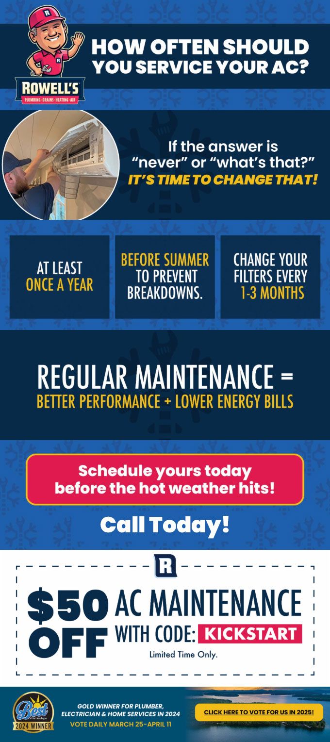 "Friendly As Can Be Since 1983!" When you need help with your plumbing, drains, heating, cooling or electrical in Laconia, you can always rely on Rowell's Services! Call us now or book online!